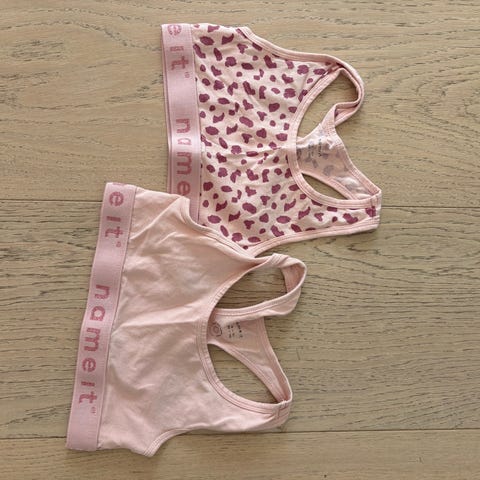 The new pige toppe i bomuld, str. 134/140 i lyserød. Sættet består af sports-bh/toppe med elastik under brystet. Velegnet som undertøj eller let top.