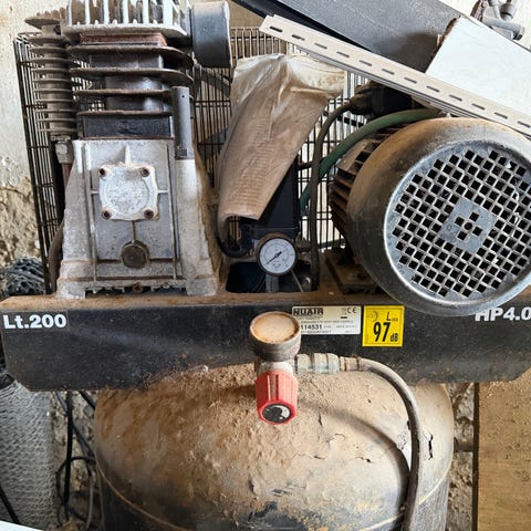 Kraftig ældre kompressor i solid kvalitet. Har været brugt på ældre mekanisk værksted