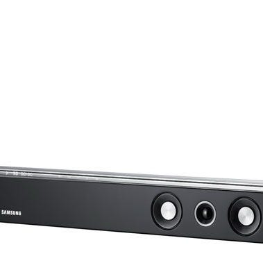 Samsung HW-Q60R soundbar med trådløs subwoofer i sort. Systemet understøtter blandt andet Dolby Audio og DTS. Soundbaren har HDMI-indgang samt mulighed for tilslutning til tv og andre lydkilder. Velegnet til brug sammen med fjernsyn i stuen eller andre rum, hvor der ønskes forbedret tv- og filmljud. Sættet består af soundbar, subwoofer og strømforsyning som vist på billederne.