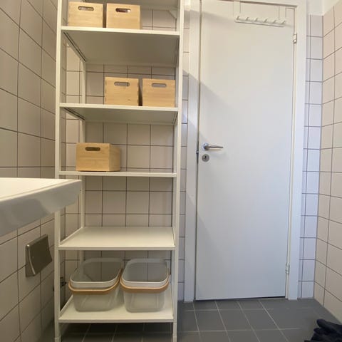 IKEA reol med 4 rum i hvid. Reolen er udført i en glat pladeoverflade og er inddelt i fire lige store kvadratiske rum. Den kan bruges stående eller liggende til opbevaring af bøger, kasser eller andre genstande i f.eks. stue, værelse eller kontor. Designet til indendørs brug. Højde 70 cm, bredde 70 cm , dybde 20 cm.