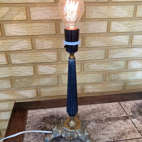 Smuk messing vintage lampe i Art Nouveau stil og rigtig flot stand H41cm og dia på skærm 17cm mp 500kr afhentes i 8570 Trustrup eller sendes for 65kr