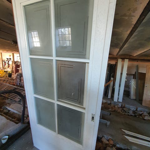 Indvendig fransk dobbeltdør med glasfelter fyrretræ