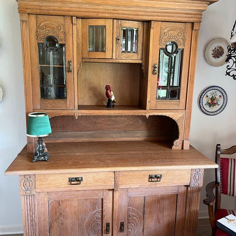 Smukt chatol med skrivebordsfunktion.