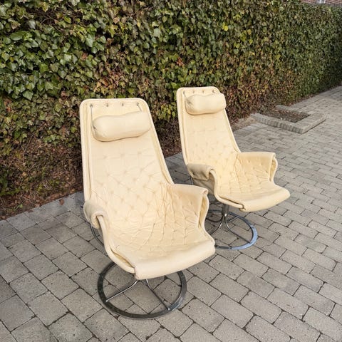 Bruno Mathsson Jetson lænestol sort læder med hovedpude og stålstel