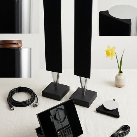 Bang & Olufsen gulvhøjttaler i aluminium med sort frontstof. Højttaleren står på en kvadratisk fod med Bang & Olufsen-logo. Designet er slankt og lodret, velegnet som fritstående højttaler i stue eller hjemmebiograf. Tilslutningsmuligheder og betjening sidder på bagsiden af søjlen tæt ved foden. Egnet til brug sammen med kompatible Bang & Olufsen-lydsystemer eller tv, afhængigt af model og tilslutning.