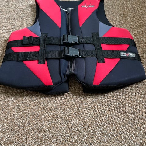 Body Glove redningsvest i gul og sort til børn med vægtinterval 14–23 kg (30–50 lb). Vesten er en type III PFD flotation aid, egnet som ski- eller wakeboardvest og til anden vandsport. Den har frontlukning med lynlås og tre justerbare spænder samt justerbare remme om livet og mellem benene for at holde vesten sikkert på plads. Ydersiden er i slidstærkt materiale med skumfyld for opdrift. Godkendt som U.S. Coast Guard type III.