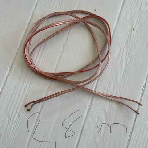 Lederne har et tværsnit på 2,5 kvadratmillimeter, og så vidt jeg husker er det iltfrit kobber.