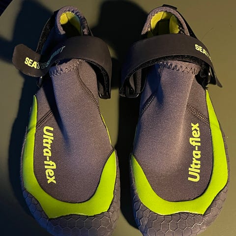 Høj støvle str 43 (har normalt str 42 plus tørbukser) til alle årstider, der giver bevægelsesfrihed. Den øvre gamache af stof er fleksibel og åndbar, mens den 4 mm neoprenstøvle er Quick Dry termisk foret - en perfekt kombination til koldt vand og varmt vejr. Velegnet til brug sammen med waders eller tørdragt til fx kajak, kano, SUP eller fiskeri, hvor der er behov for skridsikker sål og beskyttelse af foden i vådt miljø. Nypris ca 1000,00.