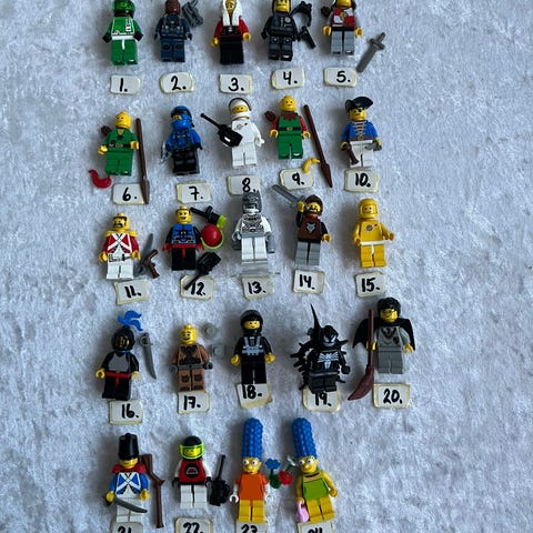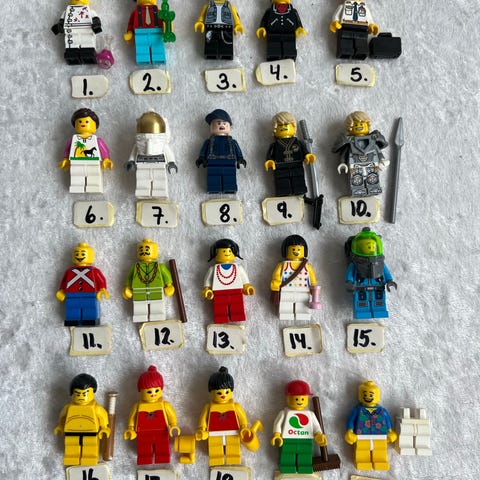 Lego mini figurer - pr stk, Mange forskellige små lego figurer pakket i små poser. De kan have fejl og mangler eller samlet forkert, da de har været leget med. Frit valg pr nummer 30kr. Ishøj.