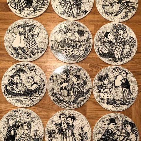 Sælger et komplet sæt af Bjørn Wiinblads klassiske månedsplatter fra Nymølle.