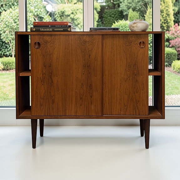 Danish compact teak sideboard with sliding doors