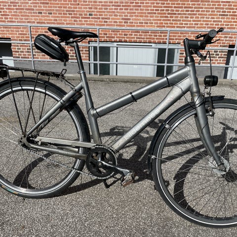 En citybike, stel 510 mm. 7 gear og med rullebremser. Cyklen er fra 2008 og har i mange år været min ekstracykel, men uden jeg har fået brug for den. Jeg har nøglen, men har pga rust ikke kunnet låse cyklen op. Der er tale om en cykel, som skal købes for stellets skyld. Jeg har papirerne, fra da jeg købte cyklen hos Fri Cykler. Dem får du inkl stelnummeret, hvis du køber cyklen. Købes som beset.
