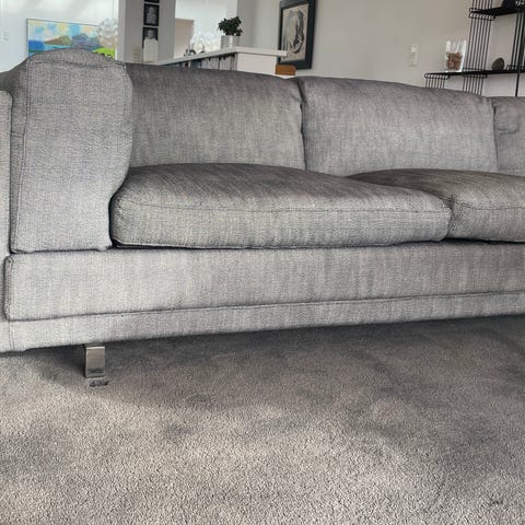 TUB hjørnesofa med ekstra dybde i grå-sort-hvid-nistret stof.