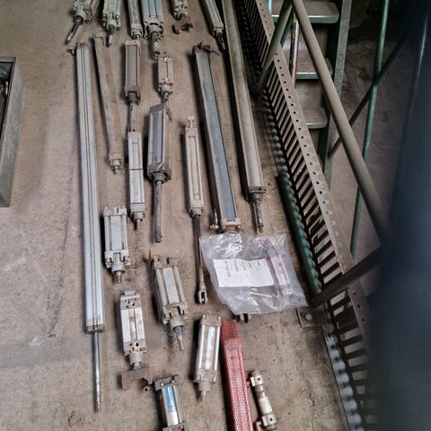 Pneumatik dele , sættet bestående af luftcylindre i forskellige længder og dimensioner, trykregulator med manometer og vandudskiller, luftfilter, luftslanger samt diverse fittings og koblinger.