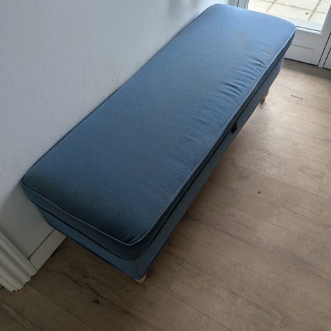 Bænk til entreen eller for enden af sengen. Let materiale.. Fra ca. 2016.