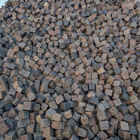 Parti gamle rødlige nordisk chaussesten - ca. 38 ton
