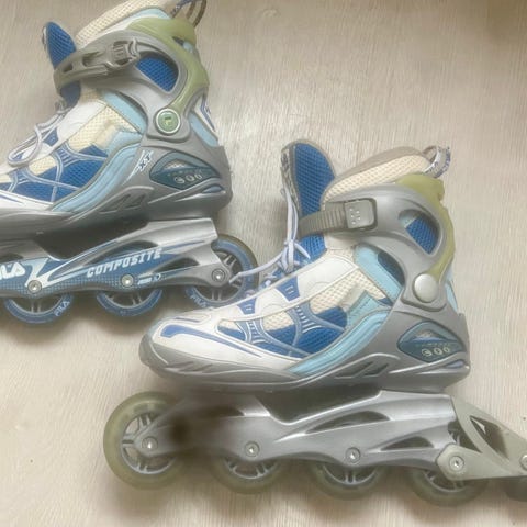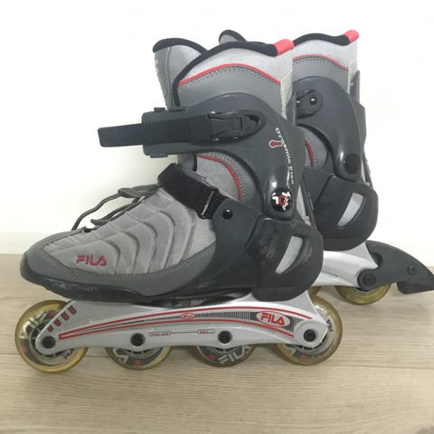 Fila rulleskøjter i størrelse 39. Rulleskøjterne er grå med justerbare spænder og snørebånd for god pasform. De har fire hjul på hver skøjte og fast hælbremse bagpå. Velegnet til fritidsbrug på asfalt og andre jævne underlag.