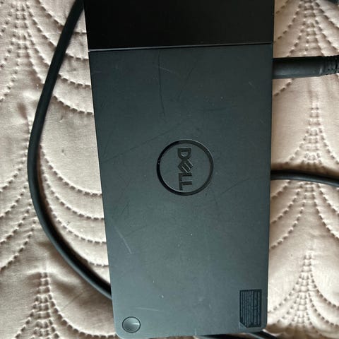 Velfungerende Dell WD19 USB-C dockingstation med 180W strømforsyning og DisplayPort kabel.