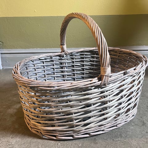 Flettede kurve i pil med hank. Sættet består af to kurve: én oval kurv med stor hank og én rektangulær kurv med hank. Begge kurve er håndflettede i naturfarvet pil og kan anvendes til opbevaring, indkøb, brænde eller dekoration i hjemmet eller i haven.