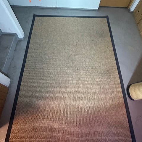 Meget fint Sisal tæppe med kantbånd og kraftig bagsidebelægning. Tæppet er i mørke grøn og måler 180 x 120 cm. Det har været brugt på gæsteværelse under et lille skrivebord. Tæppet er rent og pænt. Det er købt på mål i en meget god kvalitet.
