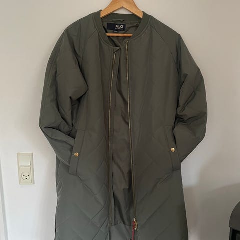 H2O let vatteret jakke til kvinder i str. XL. Jakken er grøn og fremstillet i polyester. Den har gennemgående forgyldt lynlås foran og quiltet mønster. Længere model, der dækker ned over hofterne. Ærmerne er lange, og der er trykknapper ved siderne forneden samt diskrete lommer. Velegnet som jakke til foråret.