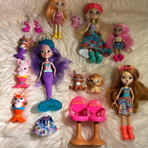 Syv enchantimals dukker sæt med tilbehør
