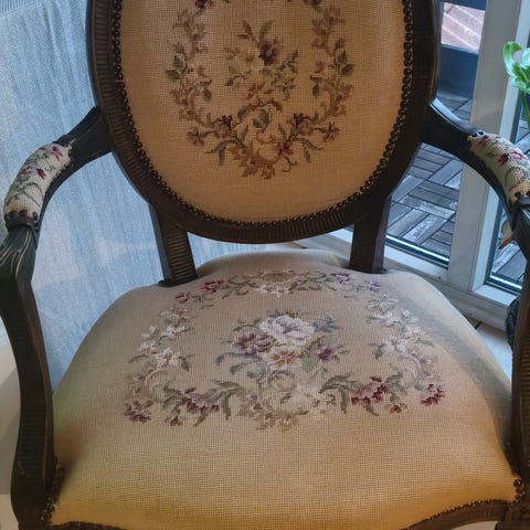 Den smukke stol, der er yderst velholdt og fremstår med tidssvarende brugsspor, har den karakteristiske spindetenstop forneden og sælges til en AFHENTNINGSPRIS af KUN kr 300.