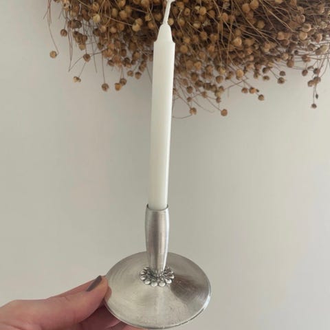Lidt stearinrester og trænger måske til at blive pudset, ellers i fin stand.