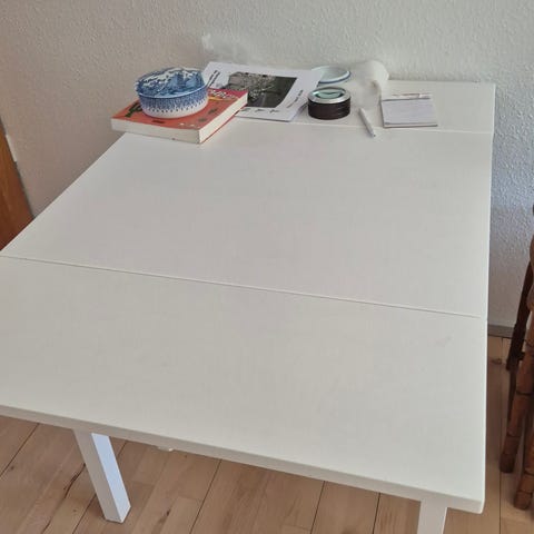 Bordet er 86 cm langt og 54 /79/104 cm bredt ... klapperne er 25 cm