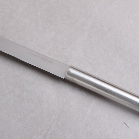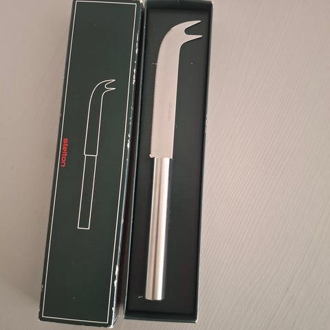 Stelton ostekniv i rustfrit stål. Kniven har savtakket klinge velegnet til skæring af ost.Håndtaget og klingen fremstår i et enkelt, funktionelt design i metal. Egnet til daglig brug i køkkenet.