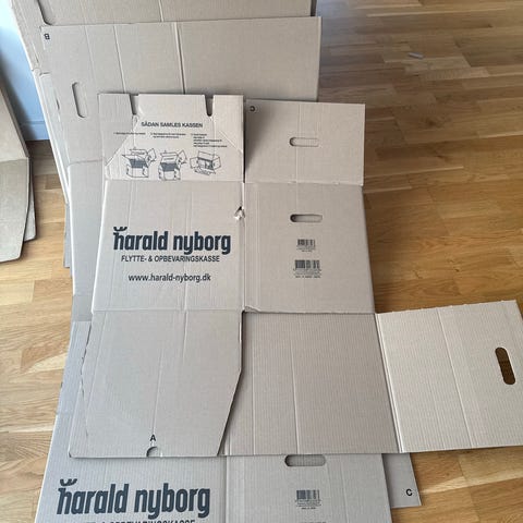 30 Harald Nyborg flytte- og opbevaringskasse i kraftig pap. Kasserne er kun brugt til en flytning og i meget god stand.