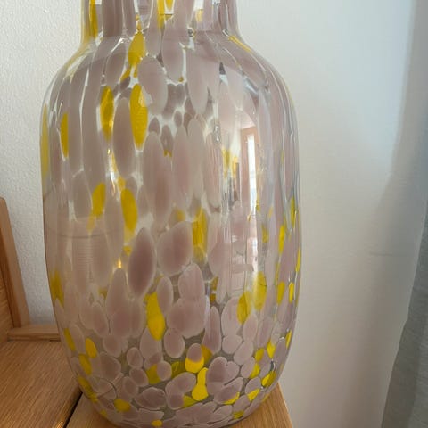 Hay vase glas gul med grøn fod