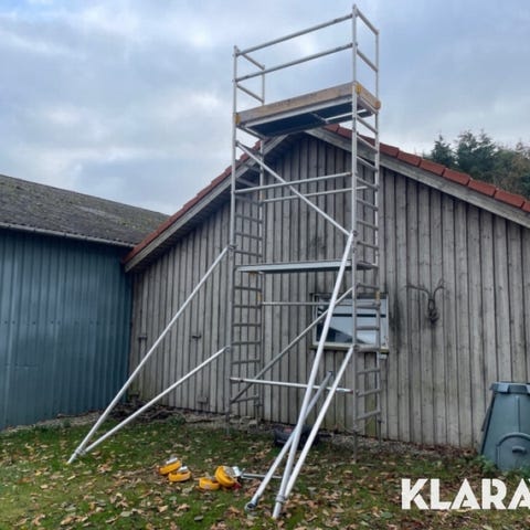 længde bjælker: 18 stk 300 cm lange, 6 stk rør 300 cm lange.
