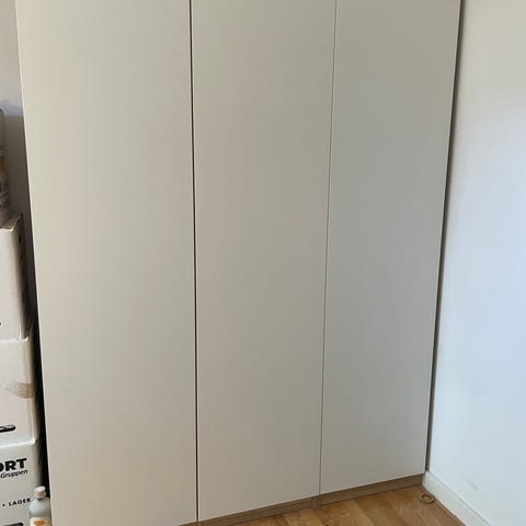 4 låger på skinner, hvor der bag 3 af lågerne er skabe, tror det er Ikea skabe. Højden er angivet for afstand mellem skinnerne loft og gulv 300 cm. Højde på de skabe som står bag lågerne er cm. 229.