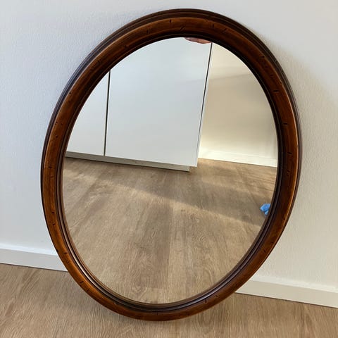 Sælger dette mega fine antikke spejl i en blød form. Det har en lille 1 mm skade som kan ses på billede. Ellers virkelig fint.