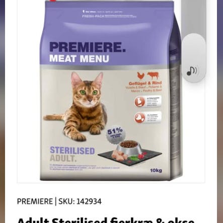 Kattefoder fra Orijen sælges billigt, da min kat nægter at spise det. Der er taget ganske lidt af de 1.8 kg.