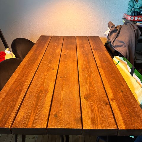 Plankebord og bænk sælges samlet. Skal afhentes på Amager og bæres ned fra 5. Nemt at bære for 2 personer.