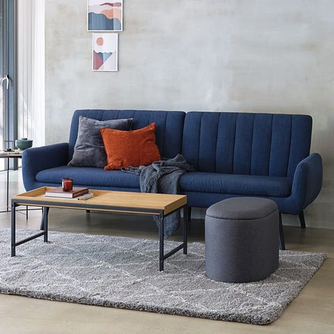 Vi sælger vores HARNDRUP sovesofa fra JYSK i mørkeblå, da vi ikke længere får den brugt. Den har primært været brugt som gæsteseng, så den er pæn og velholdt.