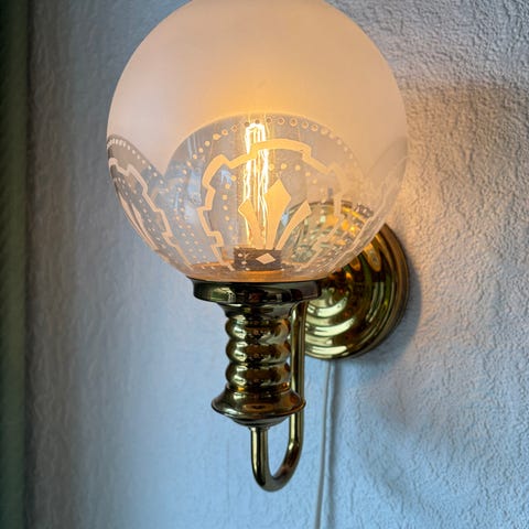 Klassisk væglampe i messing med opalglas