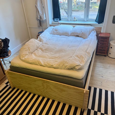 Sælger dette sengestel med madras til som matcher perfekt i farven. Med massere opbevaringsplads under.