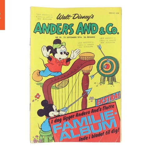 Sammendrag: Et klassisk Anders And magasin med farverige illustrationer og historier med Mickey Mouse.