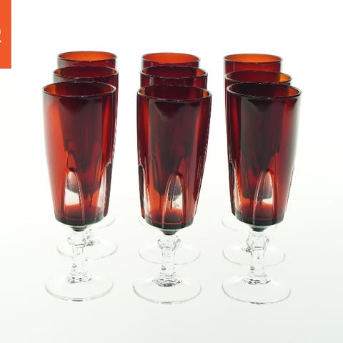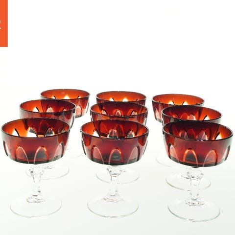 Røde glas på fod (str. H 11 cm, ø 9 cm)