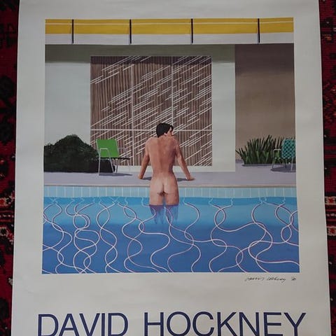 Sensationel Hockney-plakat fra udstillingen, der blev afholdt i Madrid i 1992. En perle!!!