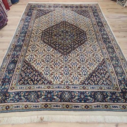 Håndledt orientalsk tæppe Bidjar Herati Royal fra Indien, 0,80 × 3,00 m, uld på uld, beige med flerfarvede detaljer, i særdeles god stand og uren, med mærkat Royal Blumen fine. Klik på den blå "gå til varen" knap, for at købe eller byde på denne vare. Den samlede pris vil blive vist inden du afgiver dit bud.