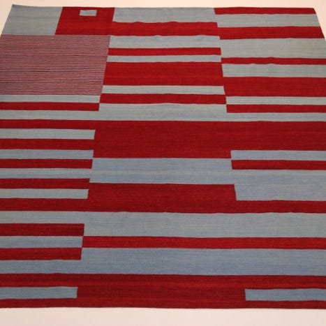 Tilbydes en moderne designer-kelim fra Pakistan.
