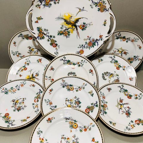 Tjener i sølvbelagt metal og krystal med gravering i art nouveau-stil, sene 1800-tallet