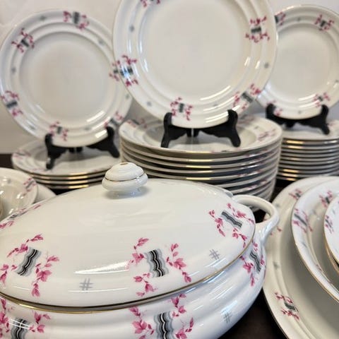 Flaskerne i krystal har gravering af løvverk, blomster og guirlander af små prikker