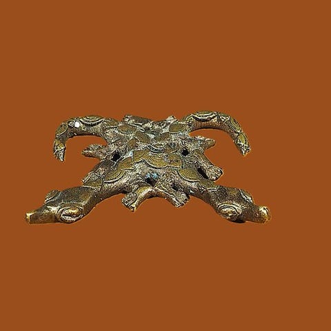 Bronze Akan vægt til at veje guld, kaldet Poids à peser l'or figuratif. Python-slange, oprindelse Elfenbenskysten, provenance Privat samling, oprindeligt navn Abrammouo, mål H 1,5 cm × B 2 cm × D 4,8 cm, vægt 29 g, stand God. Klik på den blå "gå til varen" knap, for at købe eller byde på denne vare. Den samlede pris vil blive vist inden du afgiver dit bud.
