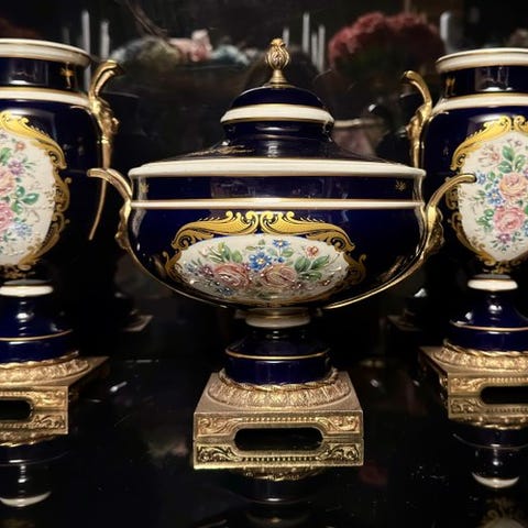 Mærke: Le Trèfle; Limoges porcelæn baluster vase, 12 cm højt og 8 cm bredt, polykromt blomster-relieff ornamentik, håndstik i relief, gulddetaljer ved halsen, ivory satin baggrund, dateret 1950’erne–1960’erne, underskrevet Le Trèfle Limoges France, i fremragende stand med minimale brugsspor. Klik på den blå "gå til varen" knap, for at købe eller byde på denne vare. Den samlede pris vil blive vist inden du afgiver dit bud.