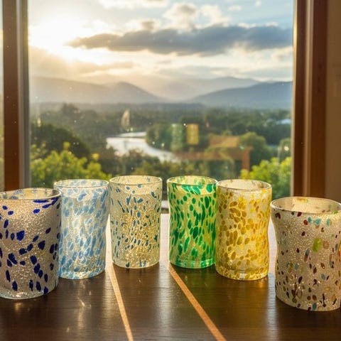 Sæt af seks Goti-glas af Murano-glas med grøn og hvid graniglia, af Xe Vero (Murano, Italien), moderne stil, 2020+, nye og i god stand med certifikat og sikkert emballage. Klik på den blå "gå til varen" knap, for at købe eller byde på denne vare. Den samlede pris vil blive vist inden du afgiver dit bud.